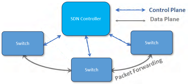 A (SDN) architektúra elválasztja egymástól a hálózati protokol SDN vezérlősíkját (Control Plane) és SDN adatsíkját (User Plane).