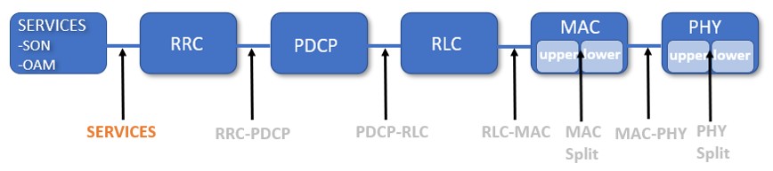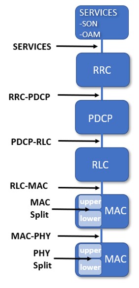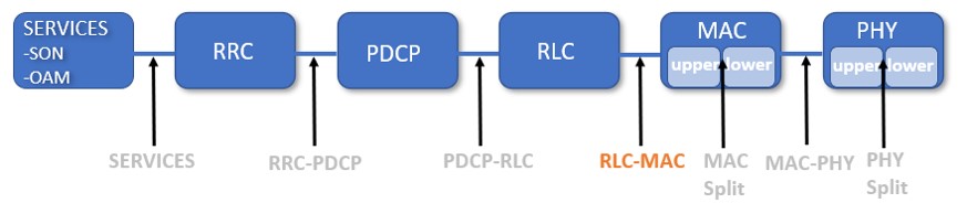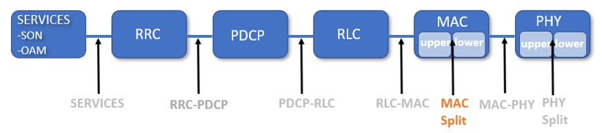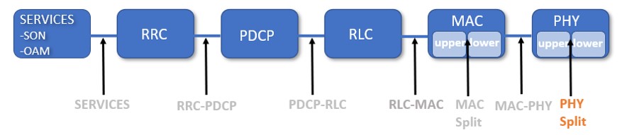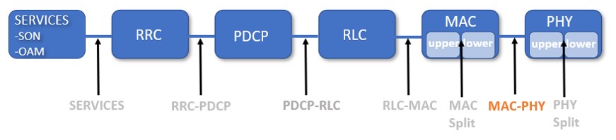 A leggyakrabban alkalmazott felosztási opció a MAC-PHY az összes lehetőség közül mivel ez kínálja a legjobb egyensújt a fronthaul követelmények és az adatsebesség között. Ma a legtöbb gyártó és SW fejlesztő is ezt a felosztási pontot tartja referenciának. Ettől eltérő megoldások is támogatottak természetesen, mint például a PHY split, ami a 7.x felosztási opció, ahol az “x” a PHY protocolon belüli felosztási lehetőségeket szimbolizálja. Attol függően, hogy hol történik a felosztás a PHY-n belül lehet 7-1 vagy 7-2 vagy 7-3 opció. Ezekről az opciókról egy másik írásban lesz szó részletesen.
