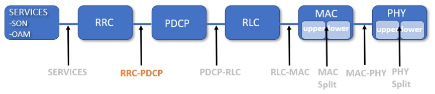 Ez a funkcionális split a virtualizált small cella RRC és PDCP protokolok között valasztja el a small cella funkciókat. Az RRC virtualizálása megkönnyíti a jelszint mérési riportok központi rendszerezését , valamint a mobilitás management algoritmusok testreszabását az üzleti követelményeknek megfelelően. Ez a felosztás, elválasztást biztosít a control plane és user plane között, lehetővé téve, hogy a user plane IP-csomagjai közvetlenül juthassanak el a céljukhoz anélkül, hogy áthaladnának a központi virtualizált platformon. Ezt a megoldás az összes fronthaul késleltetési besorolás (ideális, közel ideális, szubideális és nem ideális) támogatja. A sávszélesség követelmények sokkal lazábbak lehetnek, mint az S1 backhaulnál. Ez a felosztási mód az alacsony késleltetést igénylő use case-ek támogatására alkalmasabb.